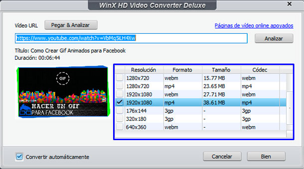 No te preocupes, WinX HD Video Converter Deluxe te permite descargar videos de más de 300 sitios web, como DailyMotion, Facebook, Vimeo, Vevo, SoundCloud, MTV, Vine y más.